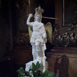Przy ołtarzu wystawiona jest figura św. Michała Archanioła z sanktuarium ku jego czci w Mont San Angelo we Włoszech, którą zakupiliśmy podczas parafialnej pielgrzymki w lipcu tego roku.