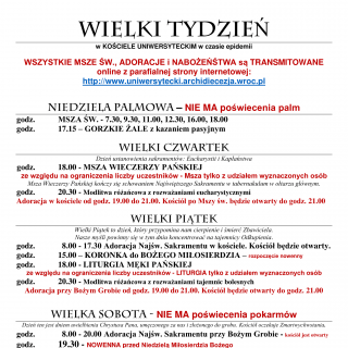 Kochani Dolnoślązacy, Bracia i Siostry, przed nami święta paschalne, największe i najważniejsze święta naszej chrześcijańskiej wiary. Ze względu na ograniczenia wprowadzone przez rząd, księża będą sprawować liturgię Wielkiego Tygodnia przy pustych kościołach, a większość...
