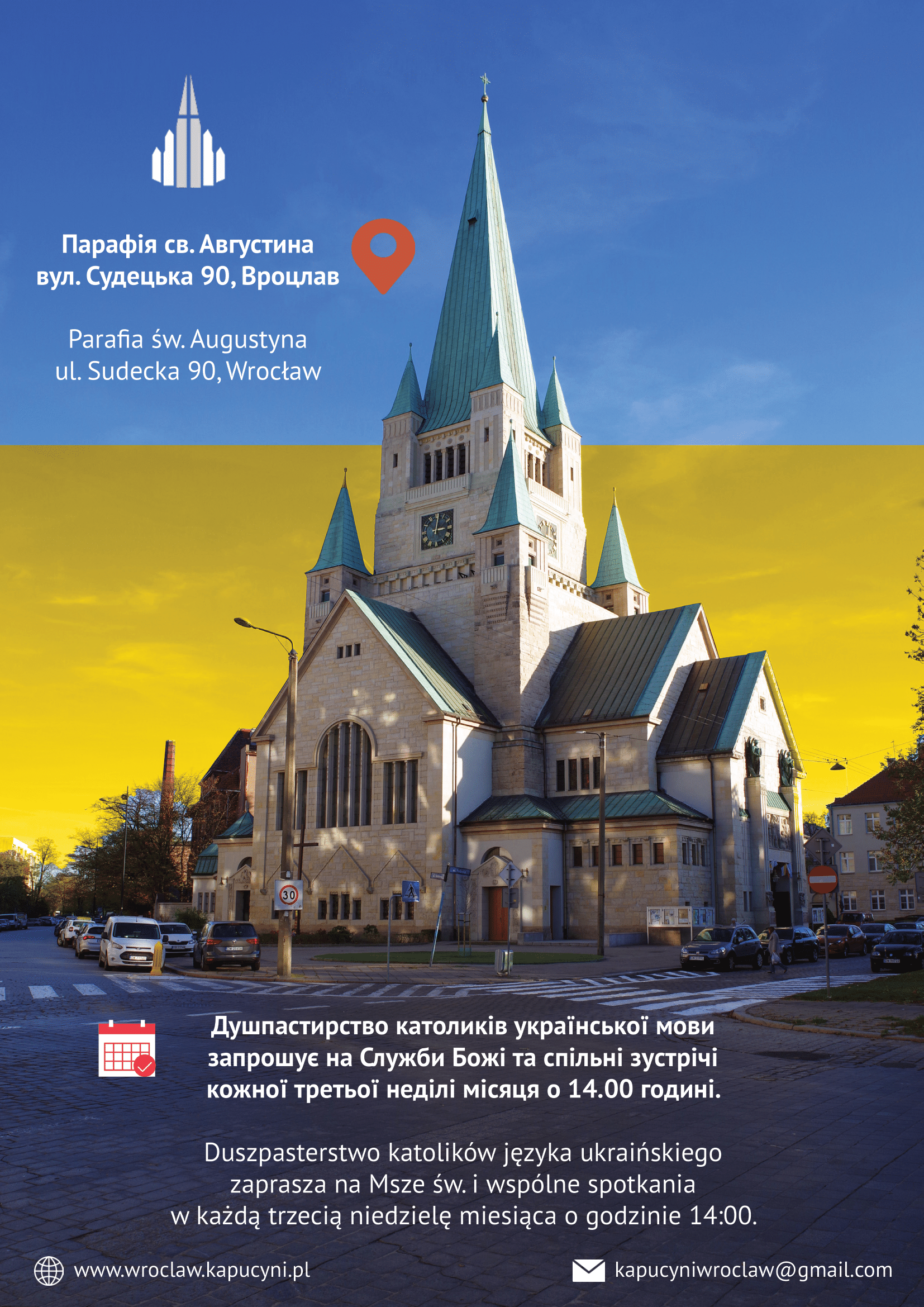 Duszpasterstwo katolików języka ukraińskiego obrządku łacińskiego zaprasza na Msze św. i wspólne spotkania do kościoła Rzymskokatolickiego pw. św. Augustyna we Wrocławiu.
