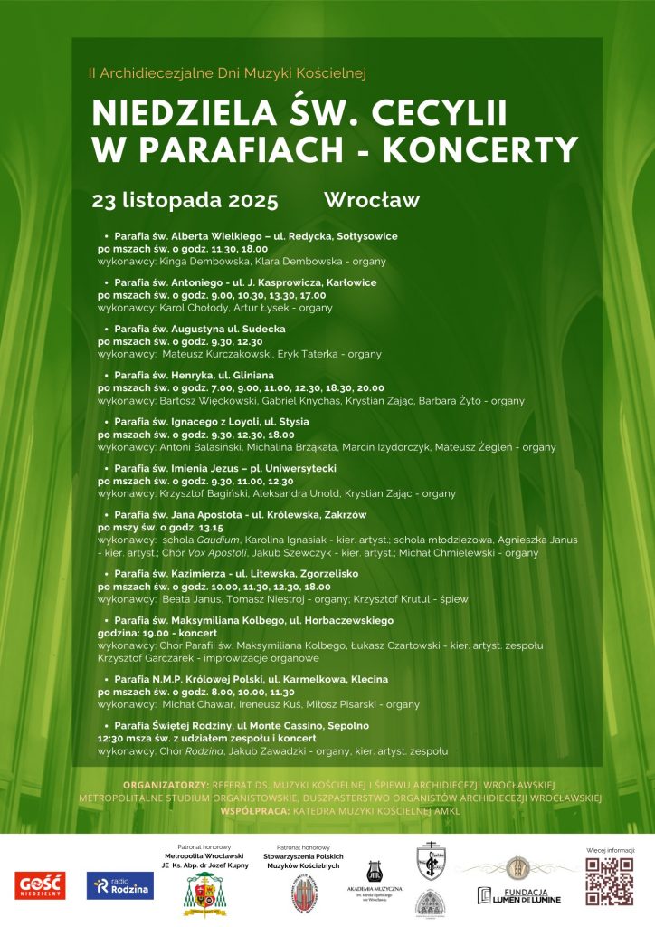 W niedzielę 23 listopada – ze względu na wspomnienie św. Cecylii, patronki organistów, muzyków, psałterzystów oraz schól i chórów kościelnych – zapraszamy na kilkuminutowe mini-koncerty.