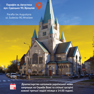 Duszpasterstwo katolików języka ukraińskiego obrządku łacińskiego zaprasza na Msze św. i wspólne spotkania do kościoła Rzymskokatolickiego pw. św. Augustyna we Wrocławiu.